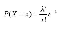 確率変数Xの値が0を含む任意の自然数xのとき、予め平均λ回起きるとわかっている事象の確率分布は以下のように表せる。