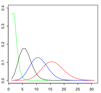 plot(dpois(0:30,lambdaa), type="l", lwd="1",col="green",ylim=c(0,0.4))