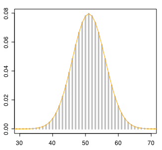 plot(dbinom(0:100,100,0.5),type="h",lwd="3",col="gray",xlim=c(30,70))