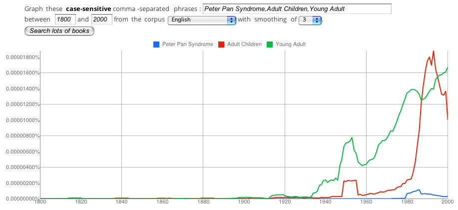 We can figure out the boom in "Peter Pan Syndrome" as the initial explosive. Since then, people came to view it as a mental disorder.
